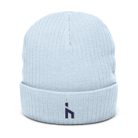 Ribbed Knit Beanie w/ Navy Icon