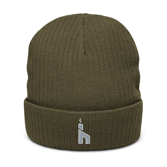 Ribbed Knit Beanie w/ Gray Icon